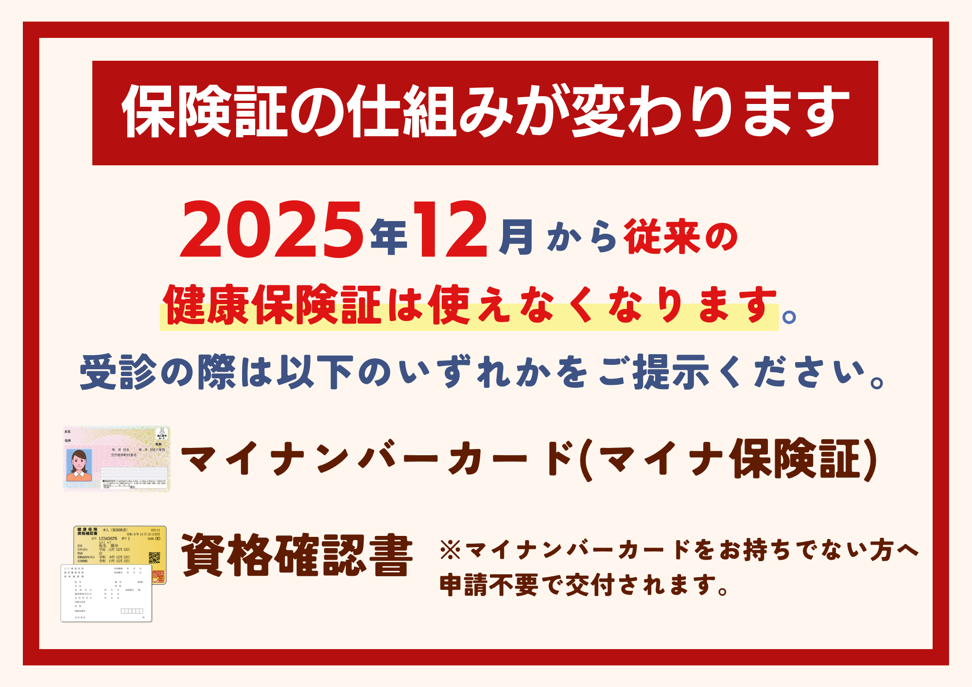 国の方針により、現在の健康保険証は 2025年12月1日までご利用いただけますが、