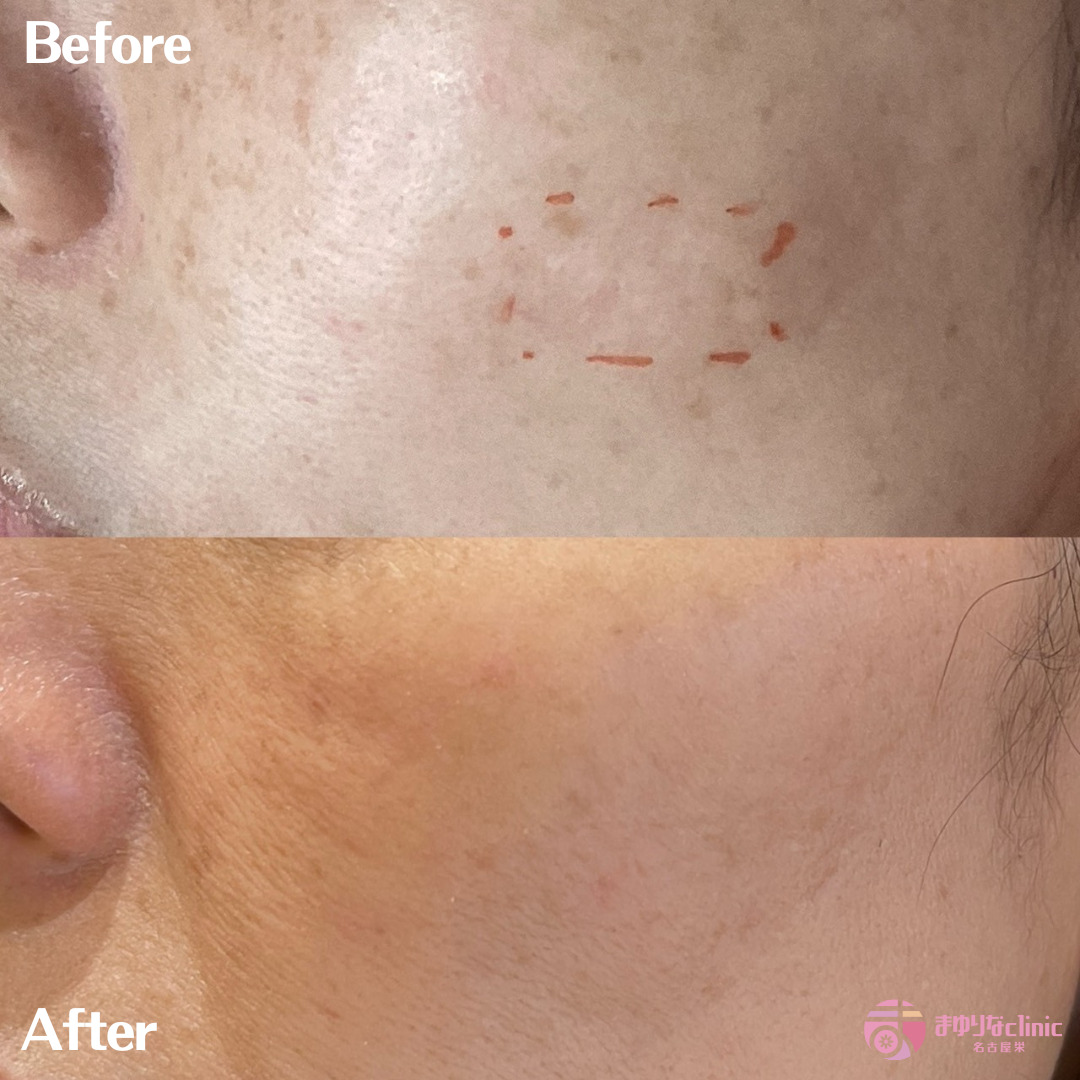 サブシジョンに加え、非架橋ヒアルロン酸1㏄を注入しております。